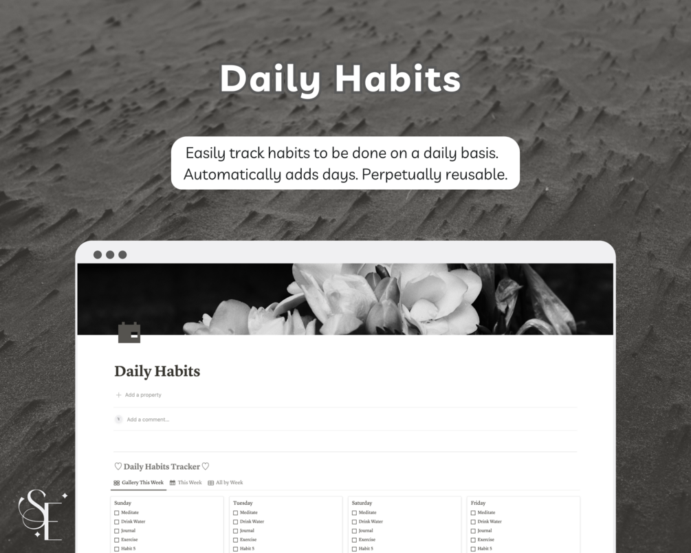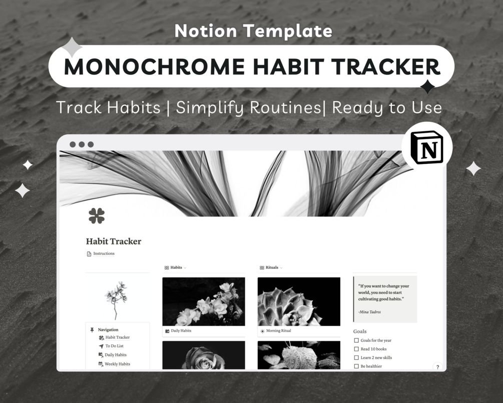 This beginner friendly, ready to use Habit Tracking Notion Template is the ultimate tool to effortlessly help you cultivate positive habits and achieve your goals.