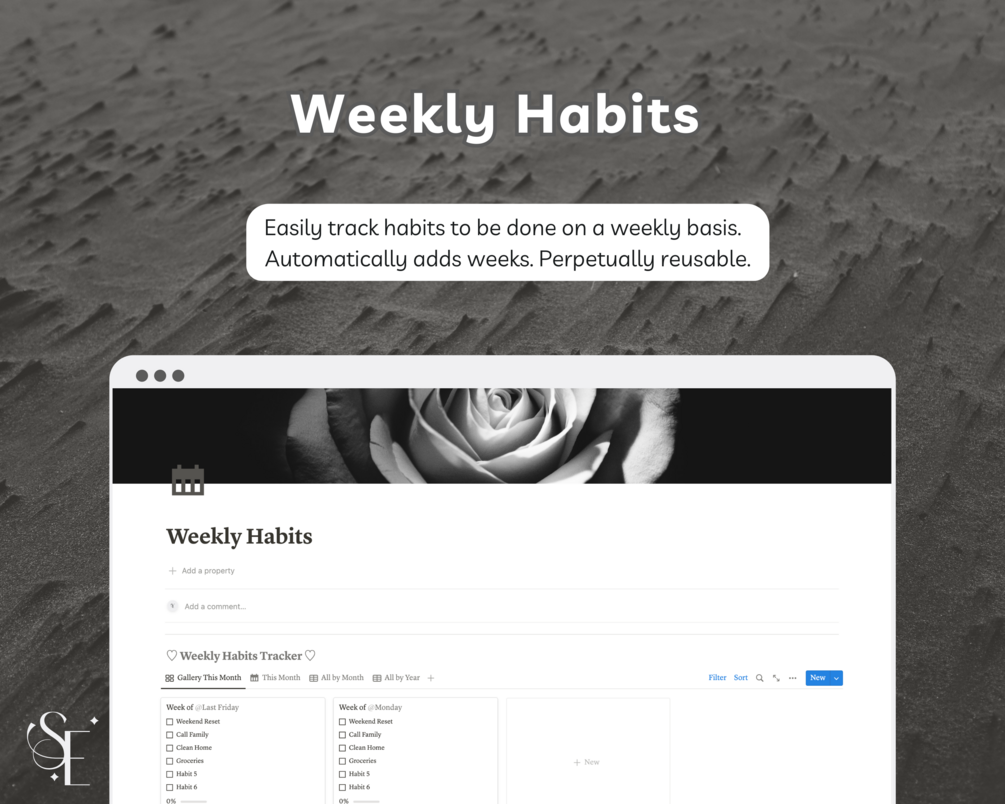 • Monthly Habit Tracker: Automatically updates yearly with a new set of months. No need to manually add new months.