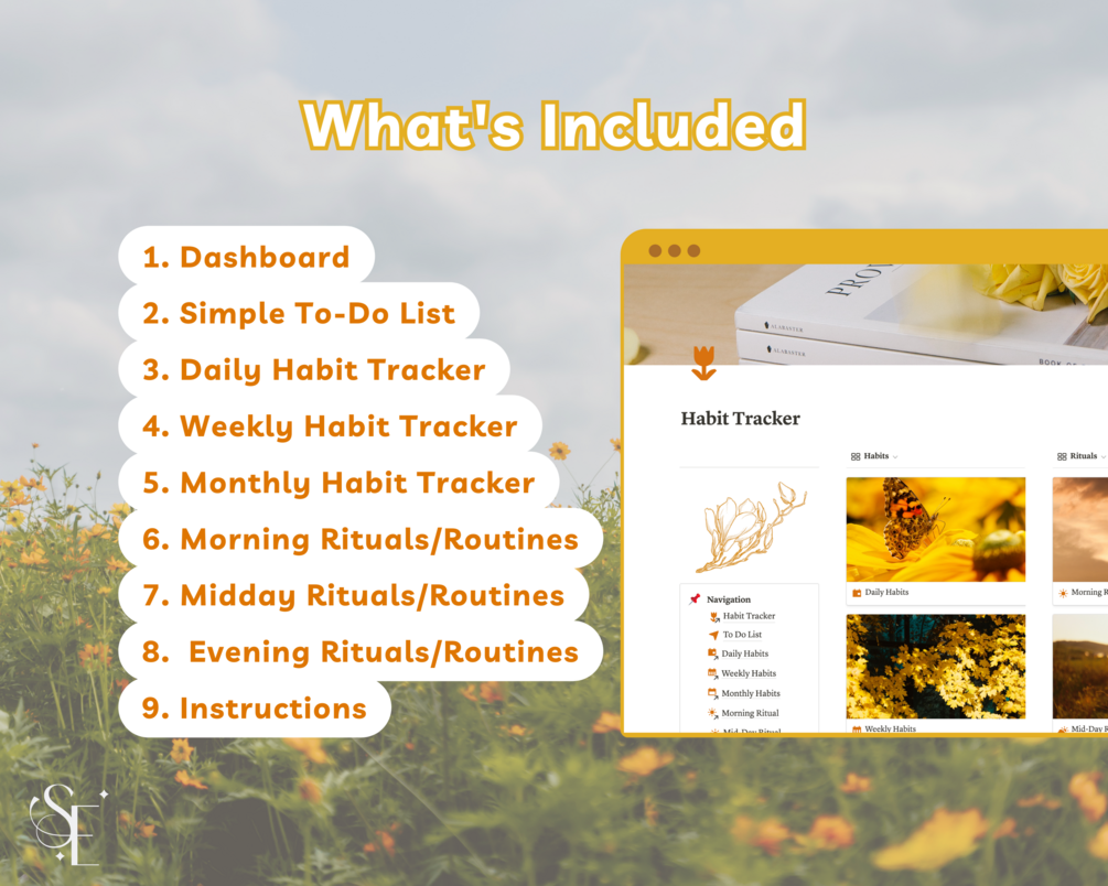 • Monthly Habit Tracker: Automatically updates yearly with a new set of months. No need to manually add new months.