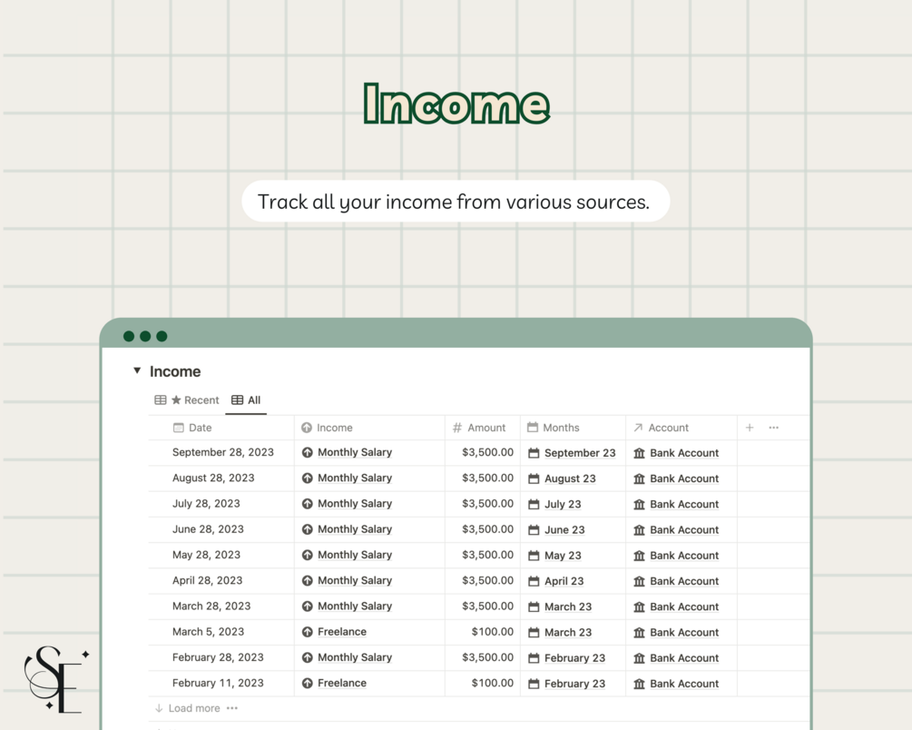 • Income: Easily add your income across your income streams.