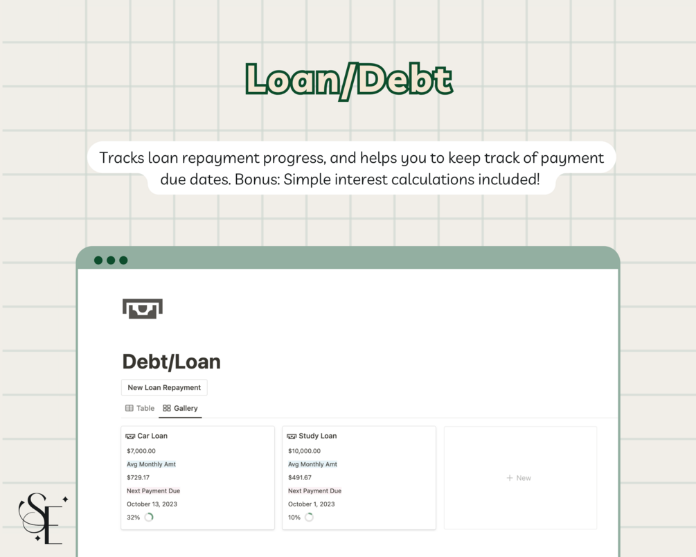 • Debt/Loan Tracker: Track your loans, repayment progress, and helps you to keep track of upcoming payment due dates. Simple interest calculations included!